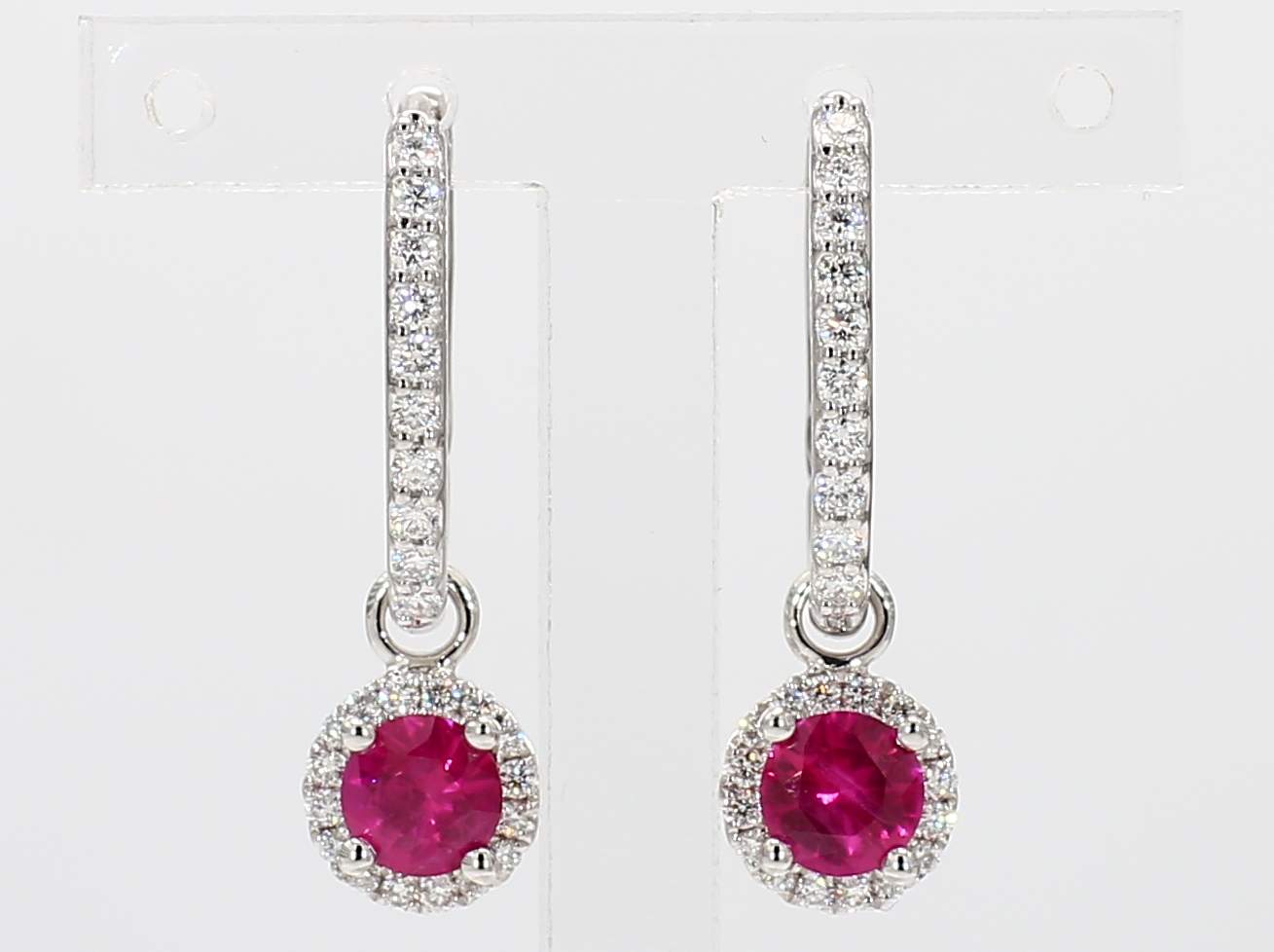 ROUND RUBY & ROUND DIAMOND 14KW EARRING