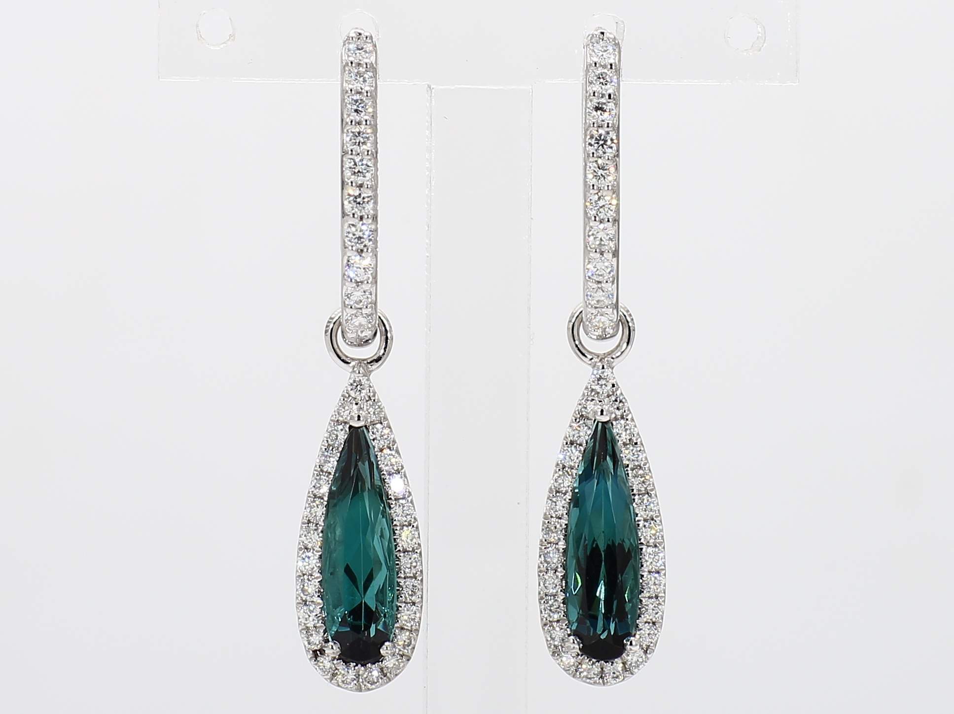 PEAR SHAPE BLUE TOURMALINE & ROUND DIAMOND 14KW EARRING