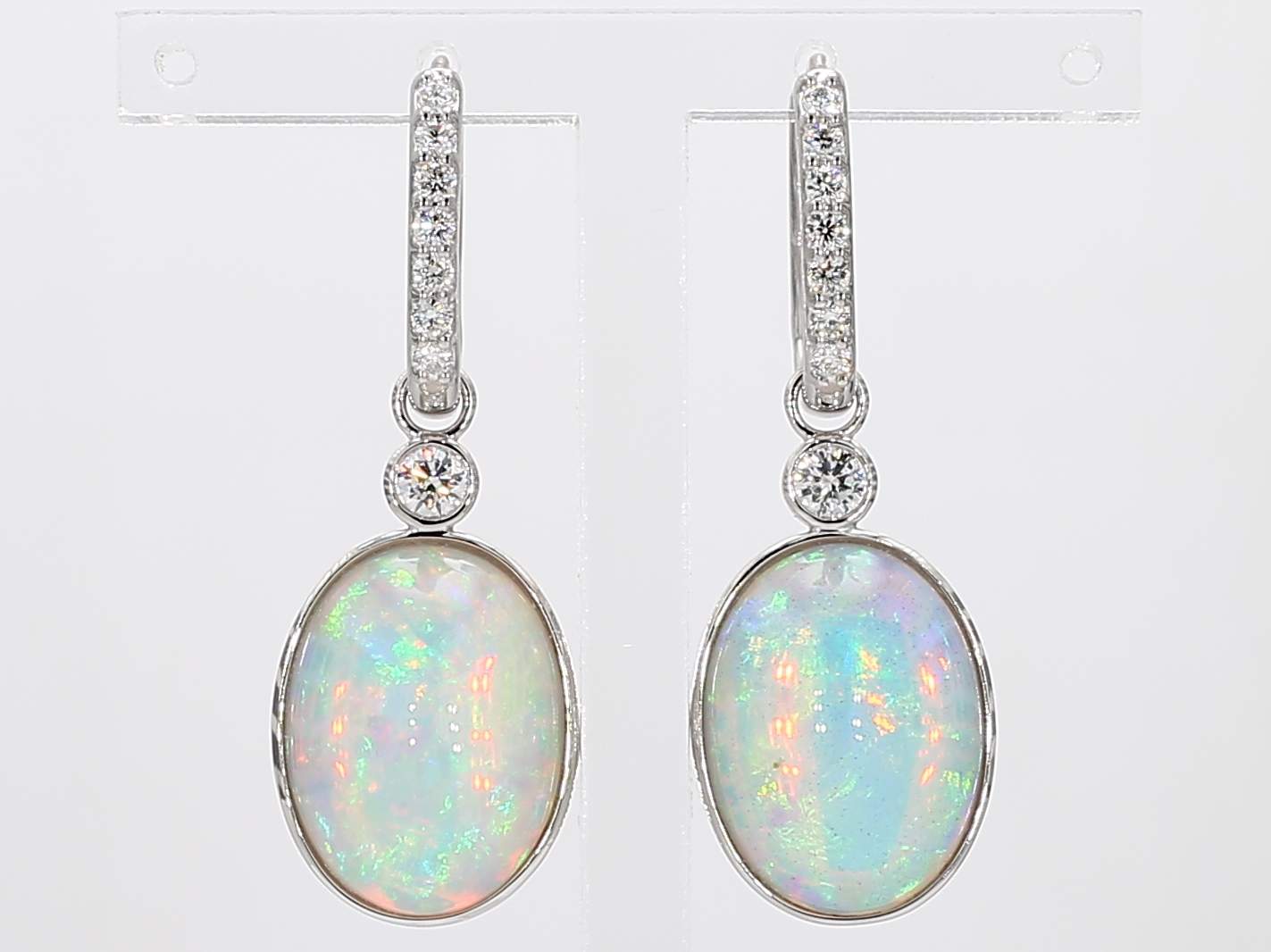 OVAL OPAL & ROUND DIAMOND 14KW EARRING