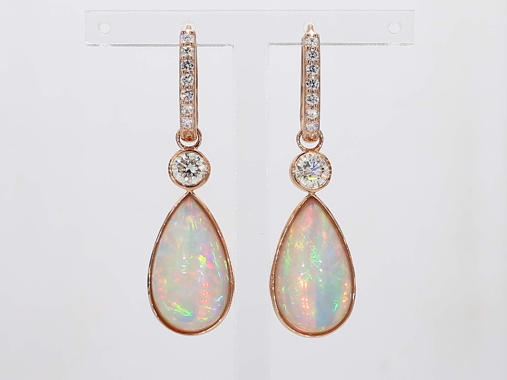 PEAR SHAPE OPAL & ROUND DIAMOND 14KR EARRING