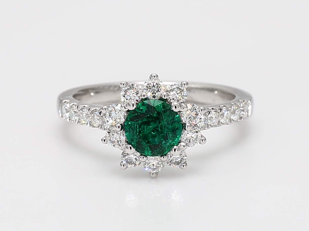 ROUND EMERALD & ROUND DIAMOND 14KW RING