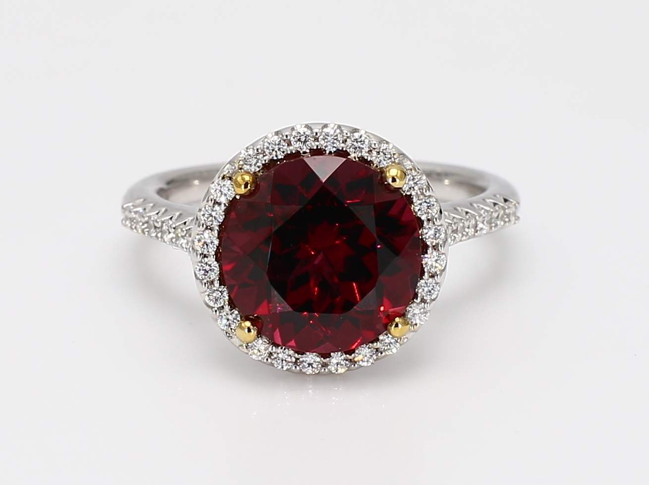ROUND RHODOLITE GARNET & ROUND DIAMOND 14KW RING