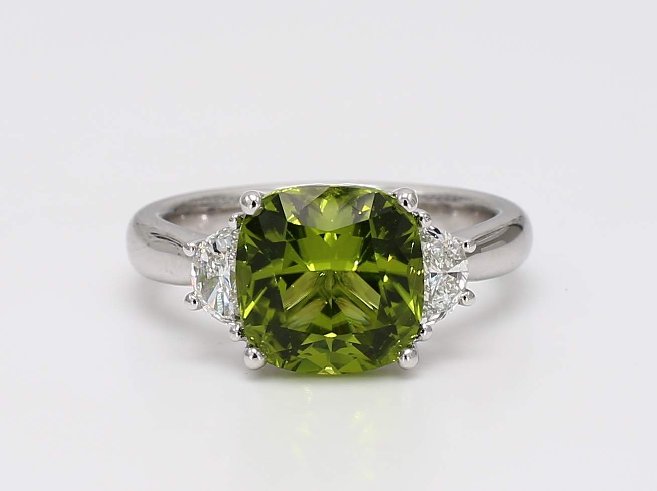 CUSHION PERIDOT & HALF MOON DIAMOND 14KW RING