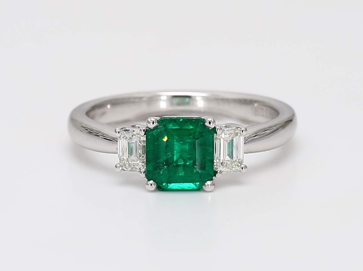 EMERALD CUT EMERALD & EMERALD CUT DIAMOND PLATINUM RING