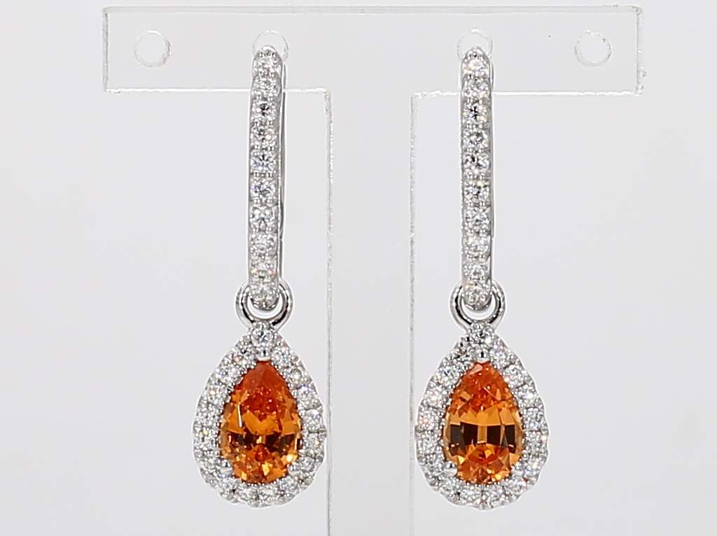 PEAR SHAPE MANDARIN GARNET & ROUND DIAMOND 14KW EARRING