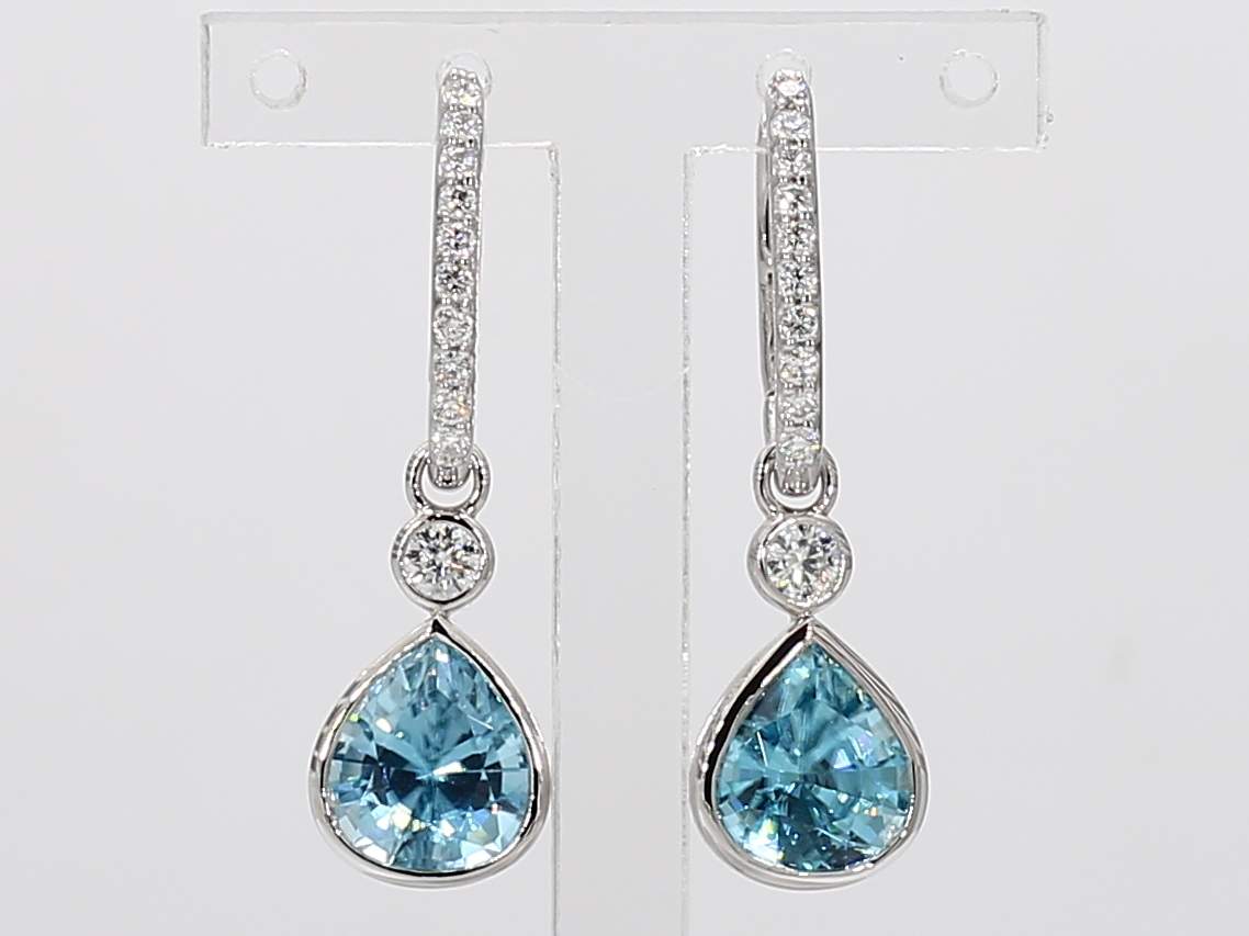 PEAR SHAPE ZIRCON & ROUND DIAMOND 14KW EARRING