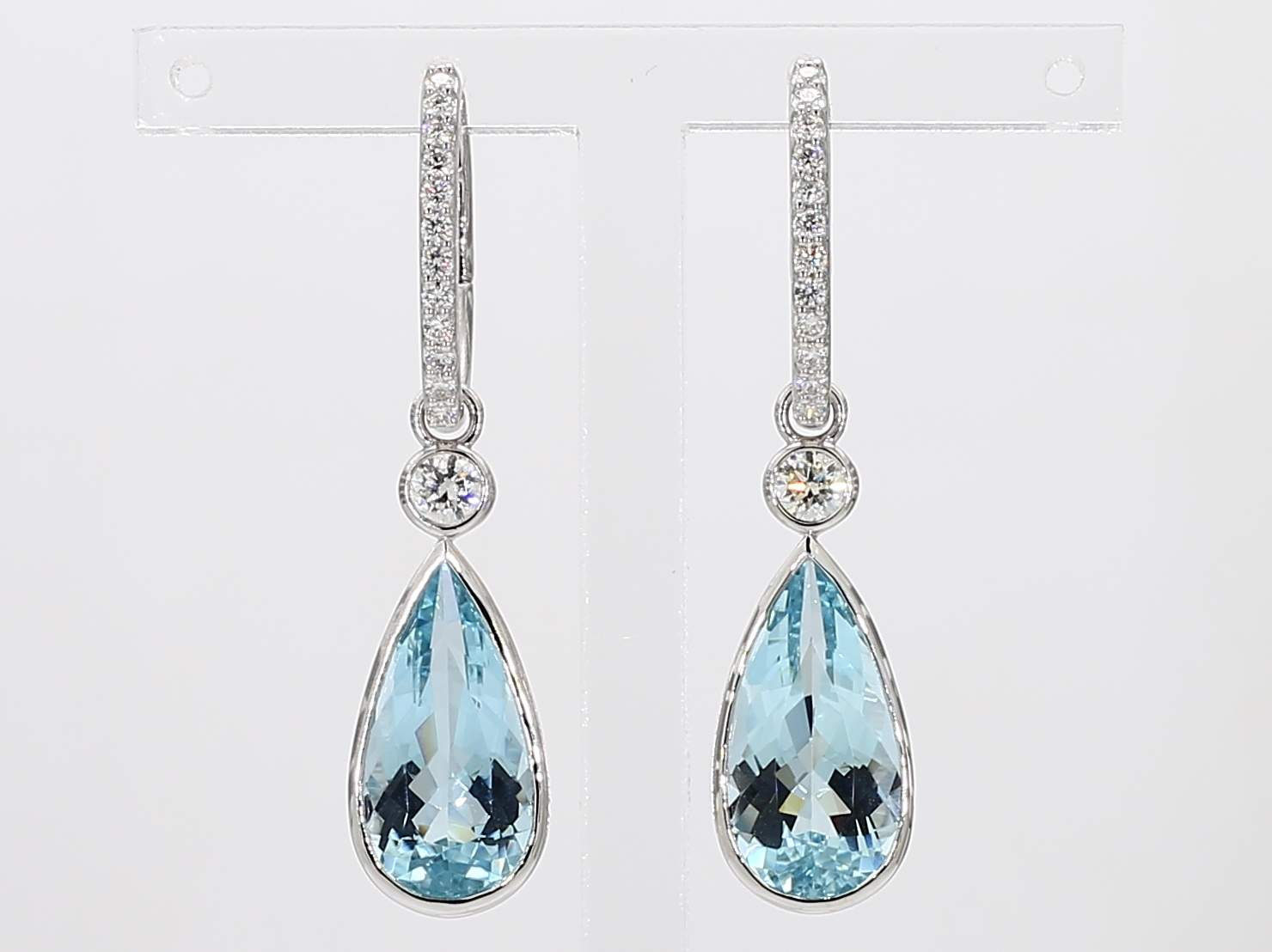 PEAR SHAPE AQUAMARINE & ROUND DIAMOND 14KW EARRING