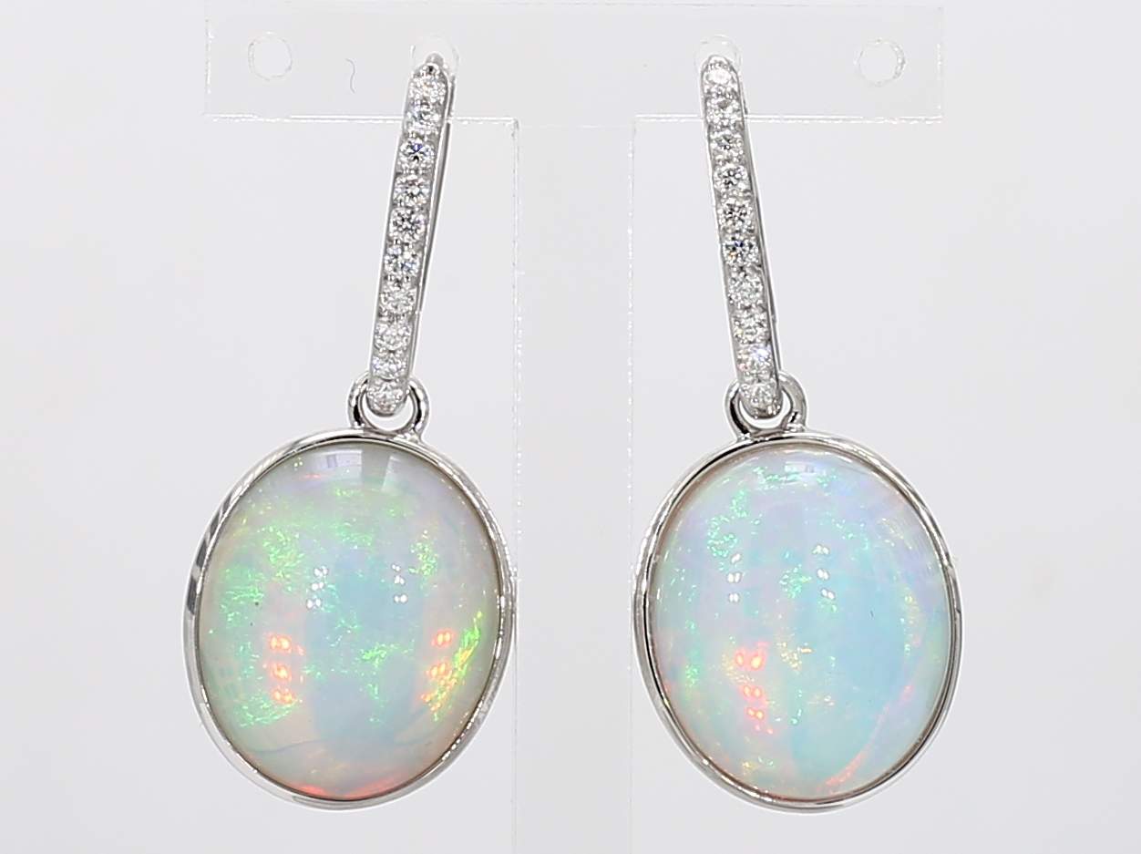 OVAL OPAL & ROUND DIAMOND 14KW EARRING
