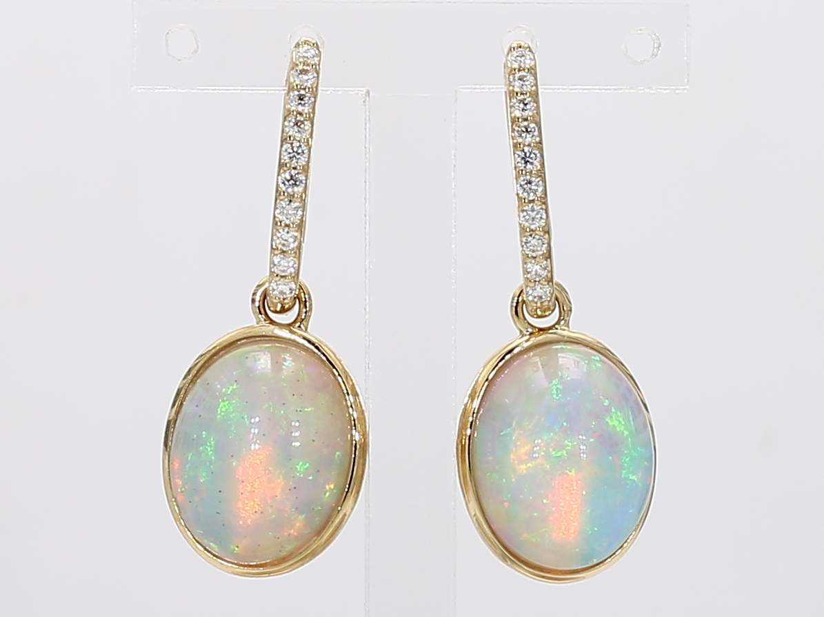 OVAL OPAL & ROUND DIAMOND 14KY EARRING
