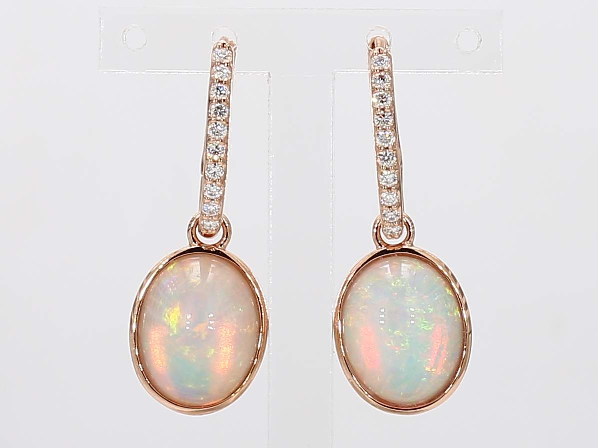 OVAL OPAL & ROUND DIAMOND 14KR EARRING