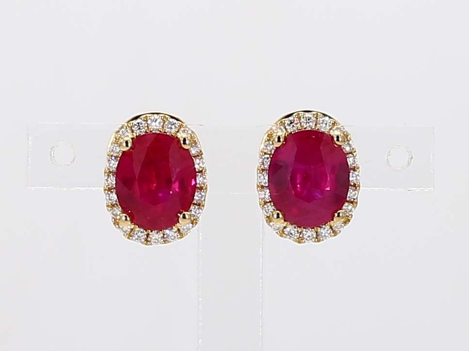 OVAL RUBY & ROUND DIAMOND 18KY EARRING