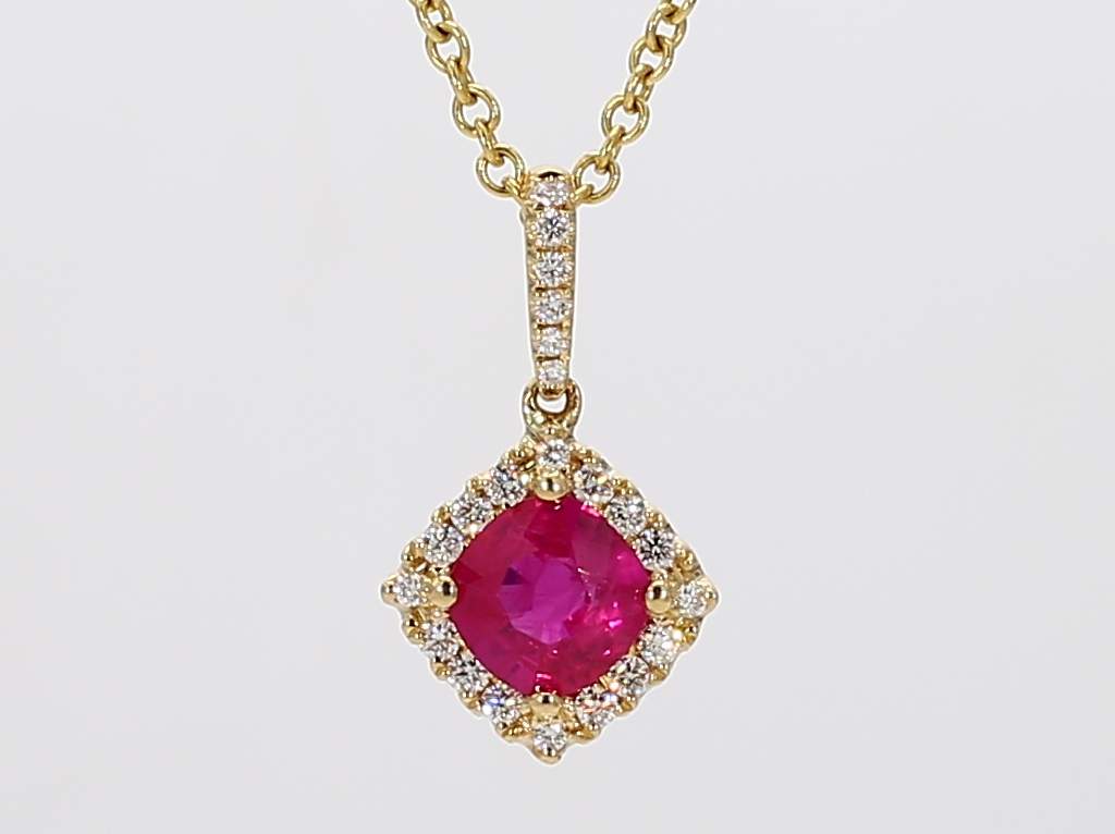 CUSHION RUBY & ROUND DIAMOND 18KY PENDANT