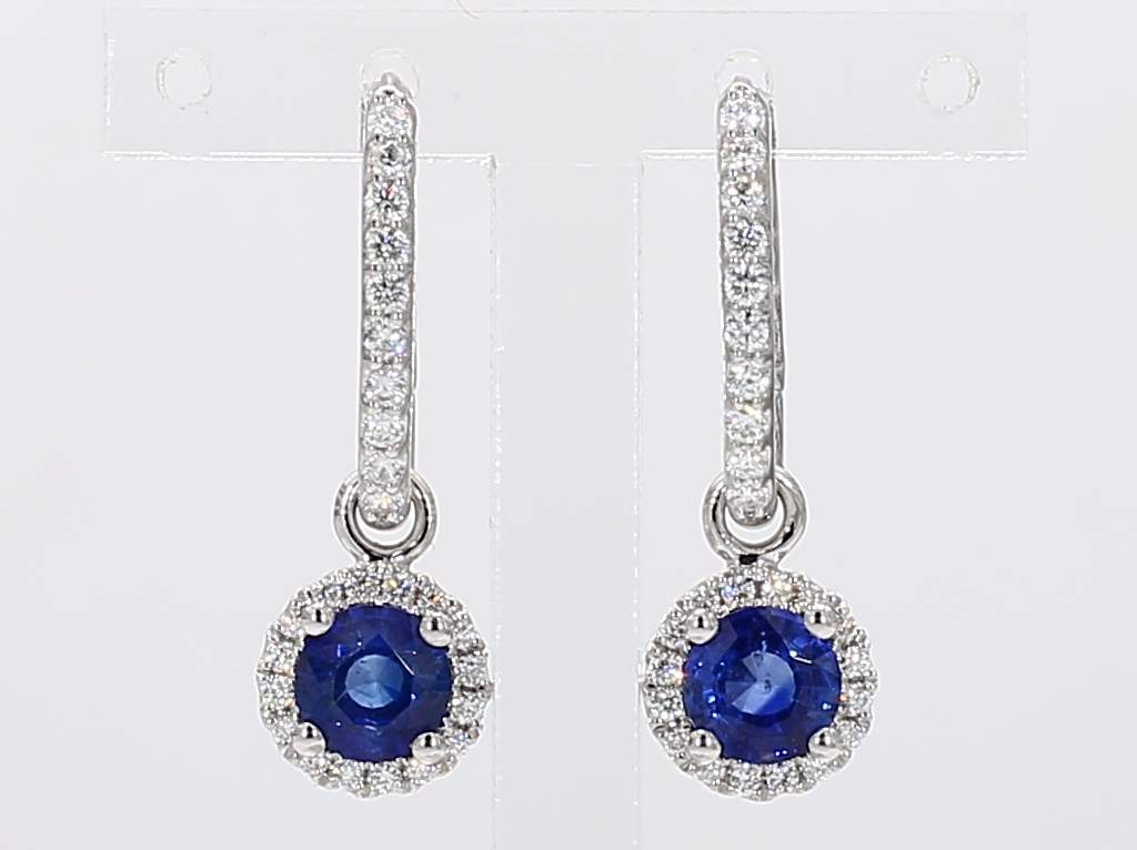 ROUND SAPPHIRE & ROUND DIAMOND 14KW EARRING