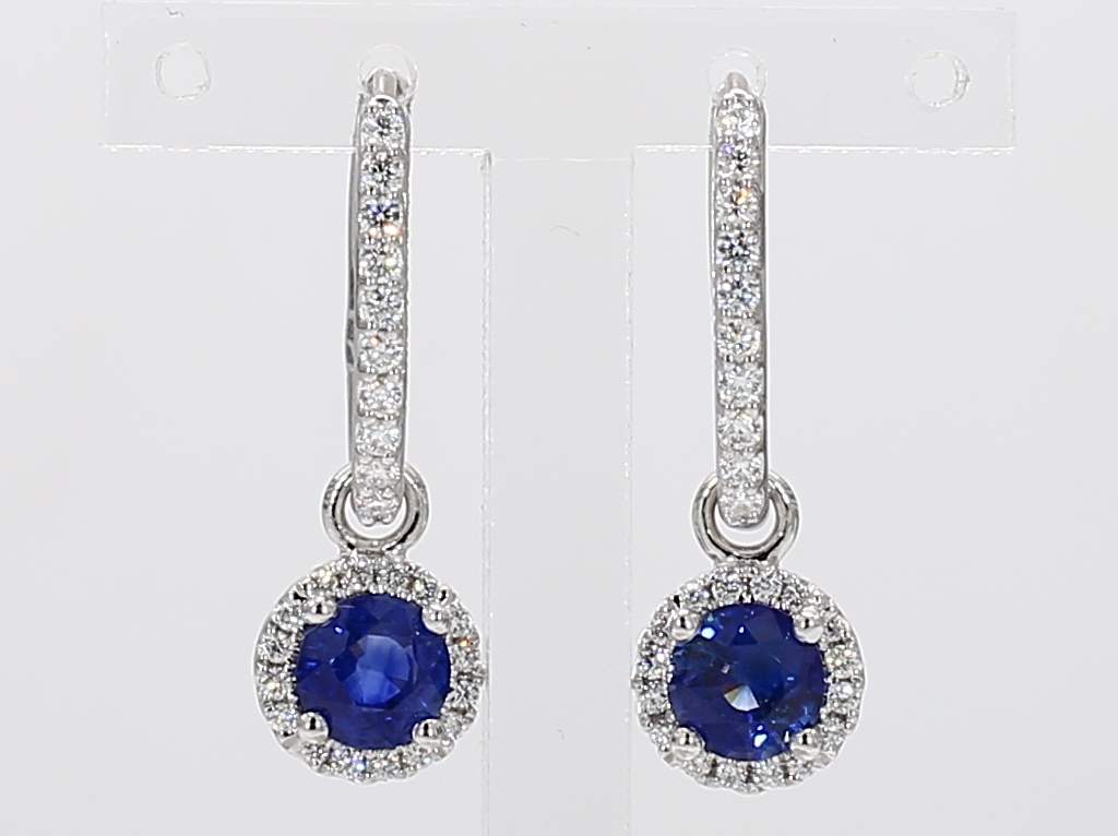 ROUND SAPPHIRE & ROUND DIAMOND 14KW EARRING