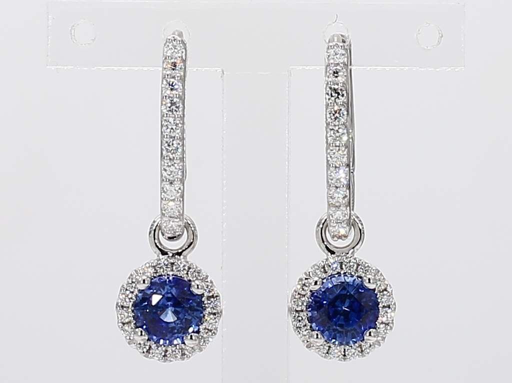ROUND SAPPHIRE & ROUND DIAMOND 14KW EARRING