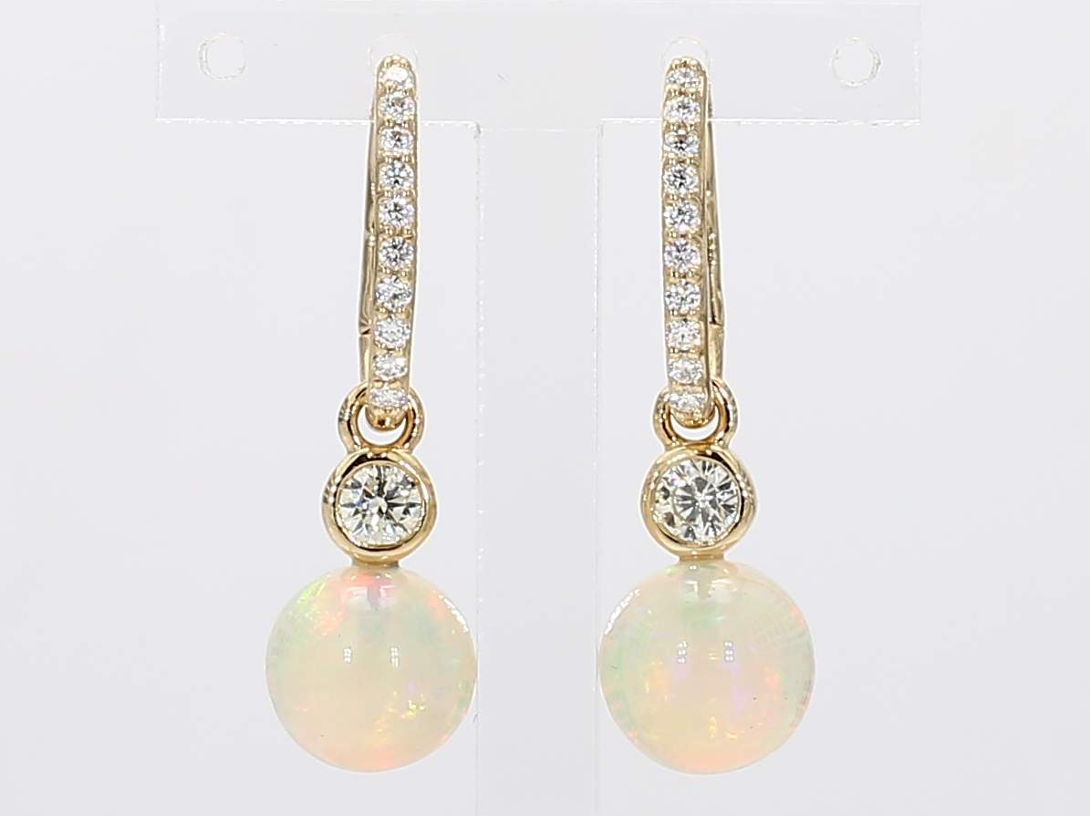 OPAL BALL & ROUND DIAMOND 14KY EARRING