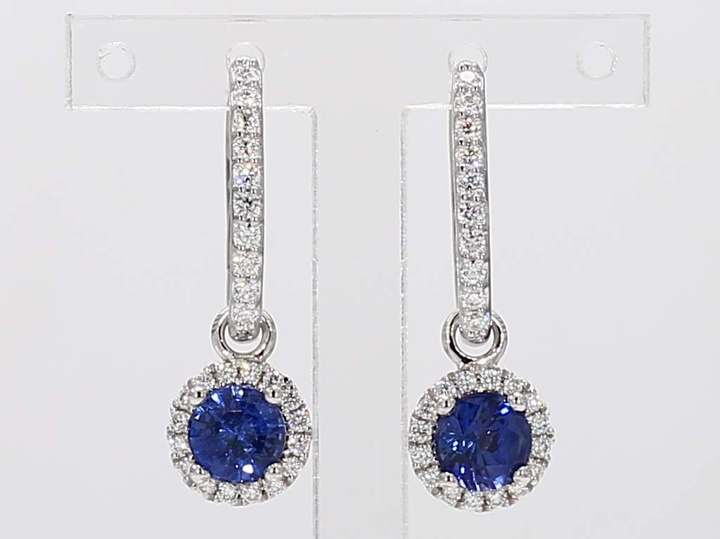 ROUND SAPPHIRE & ROUND DIAMOND 14KW EARRING