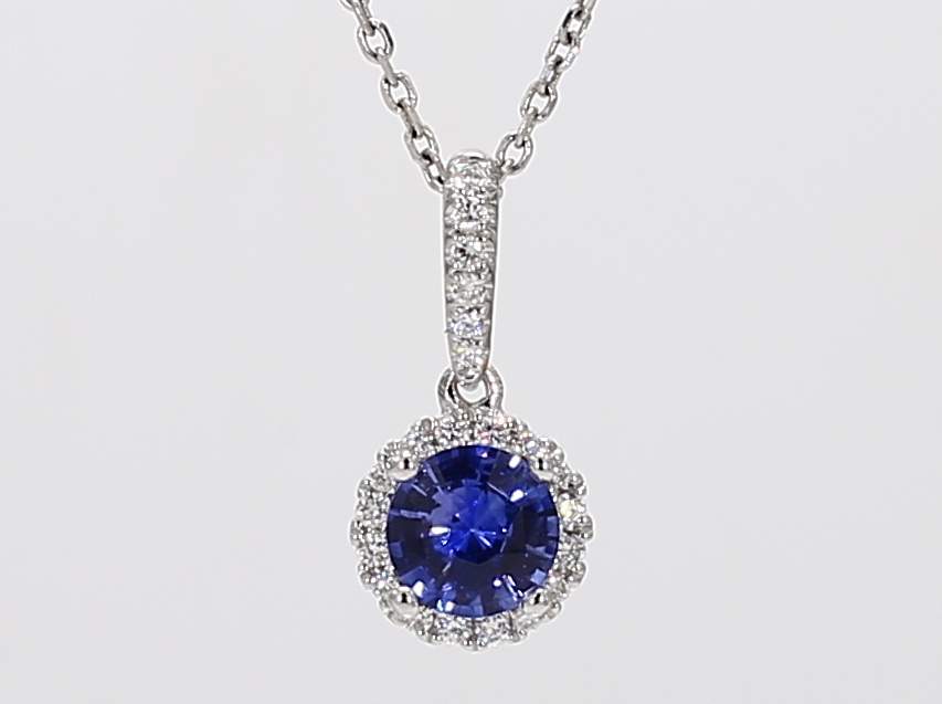 ROUND SAPPHIRE & ROUND DIAMOND 14KW PENDANT