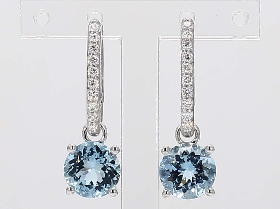ROUND AQUAMARINE & ROUND DIAMOND 14KW EARRING