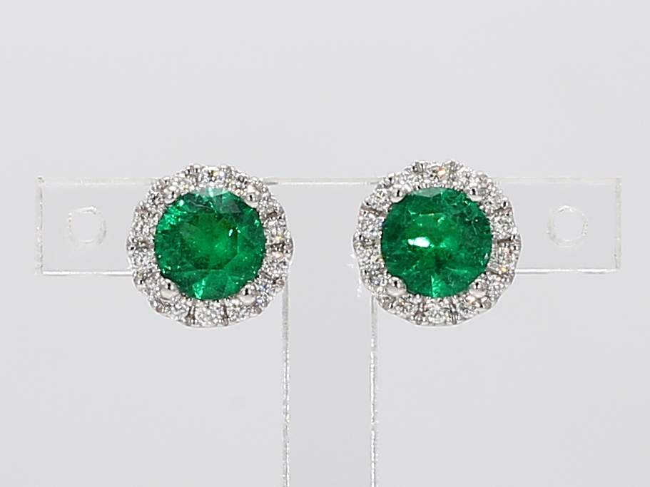 ROUND EMERALD & ROUND DIAMOND 14KW EARRING
