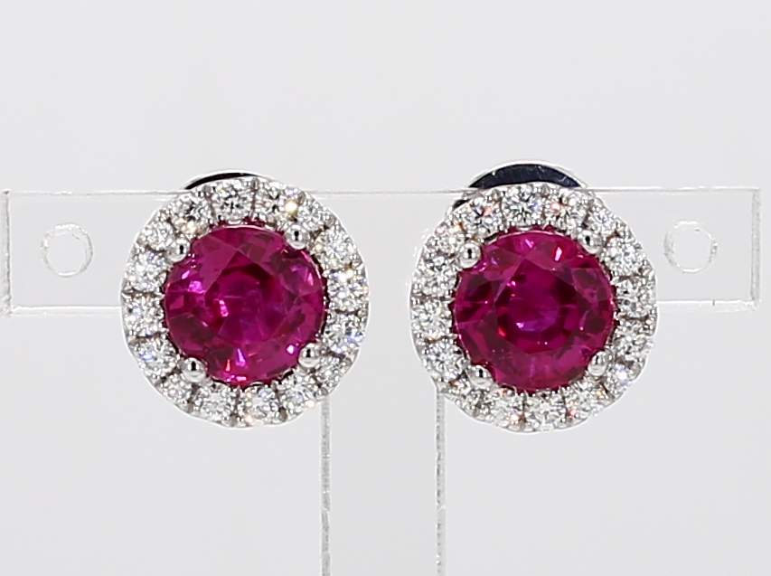 ROUND RUBY & ROUND DIAMOND 18KW EARRING