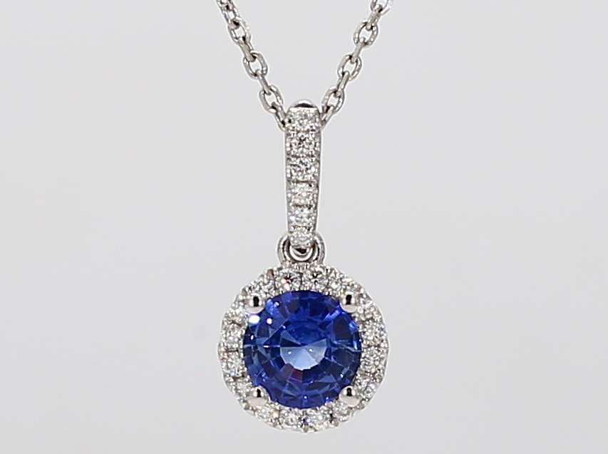 ROUND SAPPHIRE & ROUND DIAMOND 14KW PENDANT