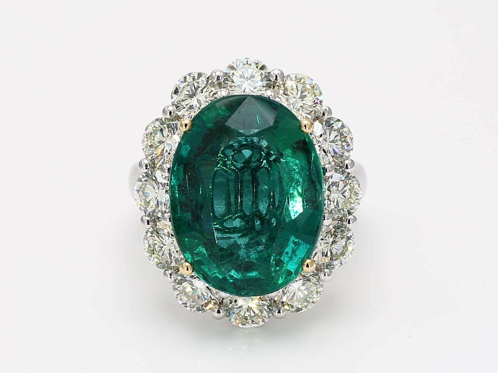 OVAL EMERALD GREEN MINOR CDC 2311192 & ROUND DIAMOND PLATINUM & 18KY RING