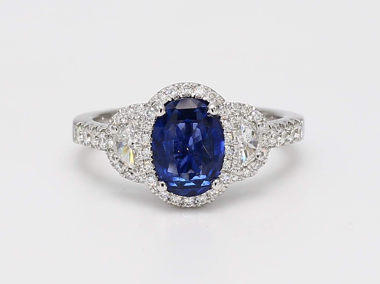 OVAL SAPPHIRE & HALF MOON DIAMOND & ROUND DIAMOND 14KW RING