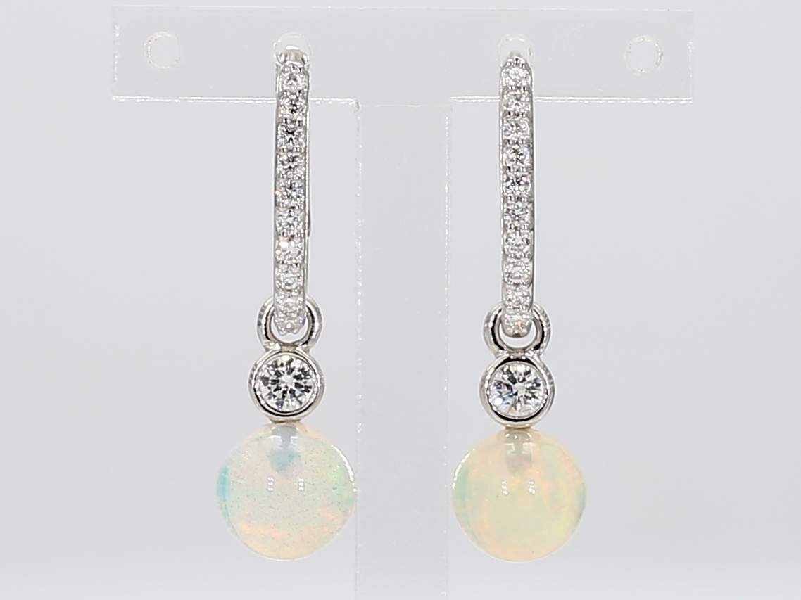 OPAL SPHERE & ROUND DIAMOND 14KW HOOP EARRING
