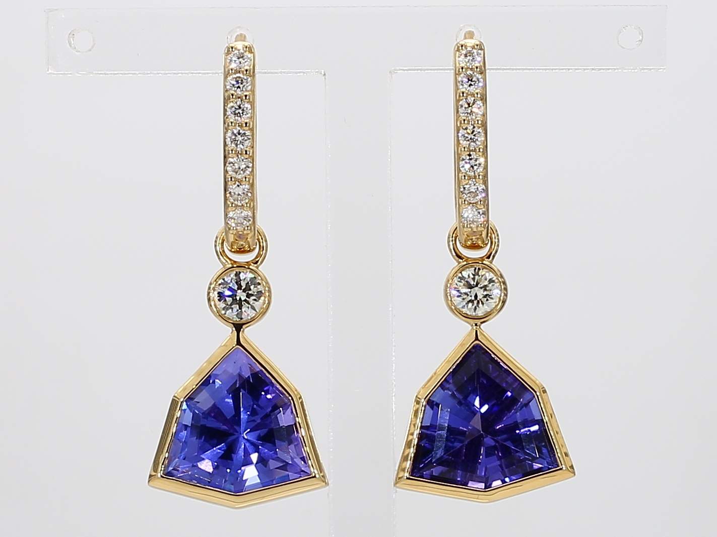 FANCY TRIANGLE TANZANITE & ROUND DIAMOND 18KY EARRING