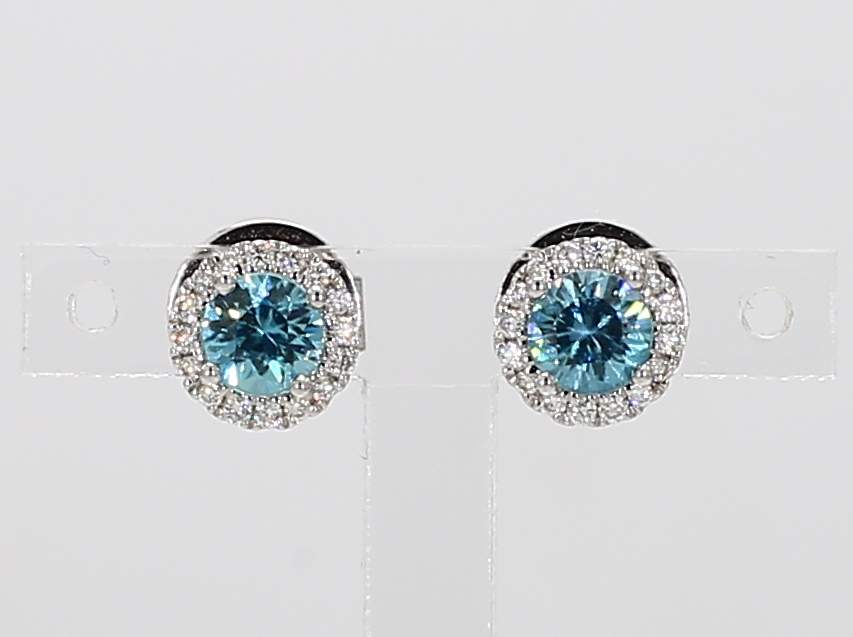 ROUND ZIRCON & ROUND DIAMOND 14KW EARRING