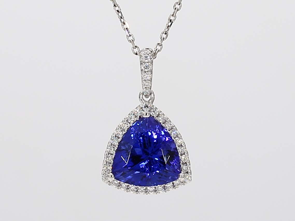 TRILLION TANZANITE & ROUND DIAMOND 14KW PENDANT