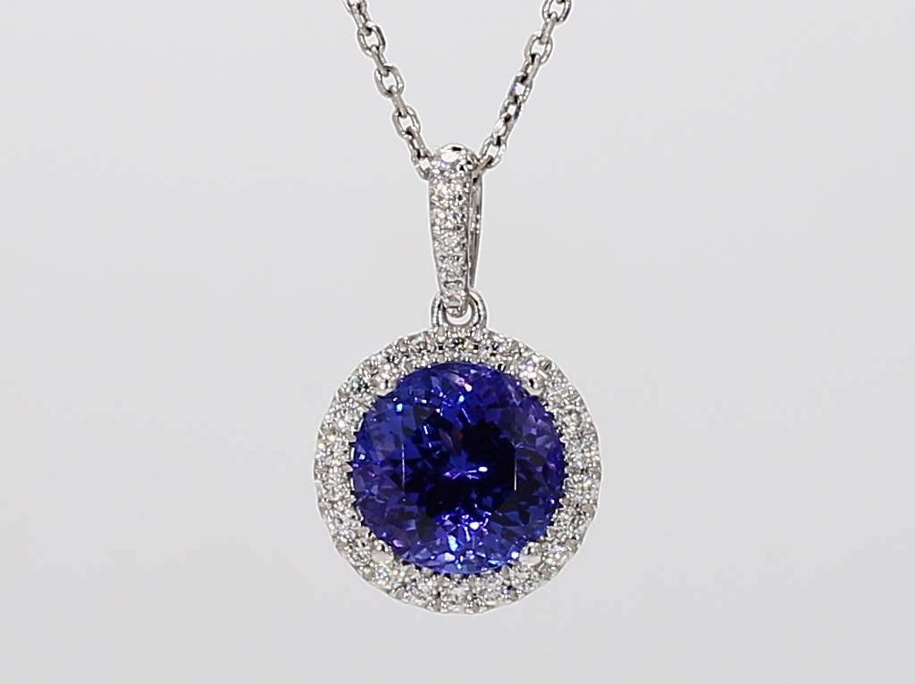 ROUND TANZANITE & ROUND DIAMOND 14KW PENDANT