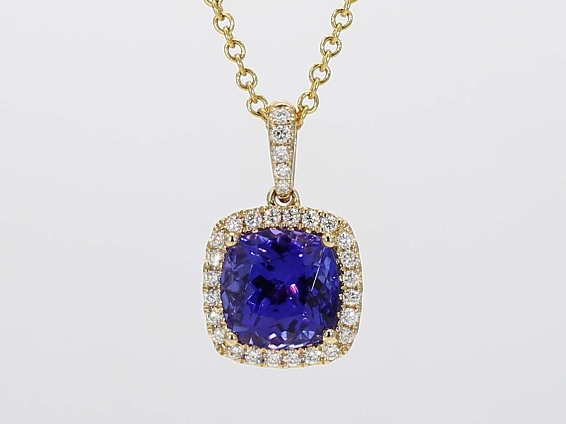 CUSHION TANZANITE & ROUND DIAMOND 14KY PENDANT