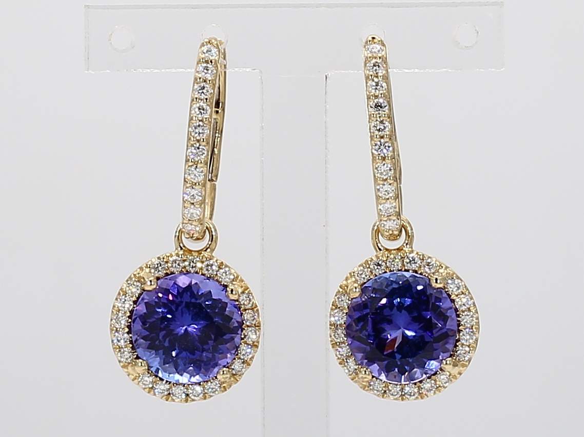 ROUND TANZANITE & ROUND DIAMOND 14KY EARRING