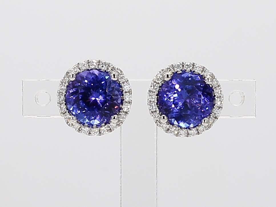 ROUND TANZANITE & ROUND DIAMOND 14KW EARRING