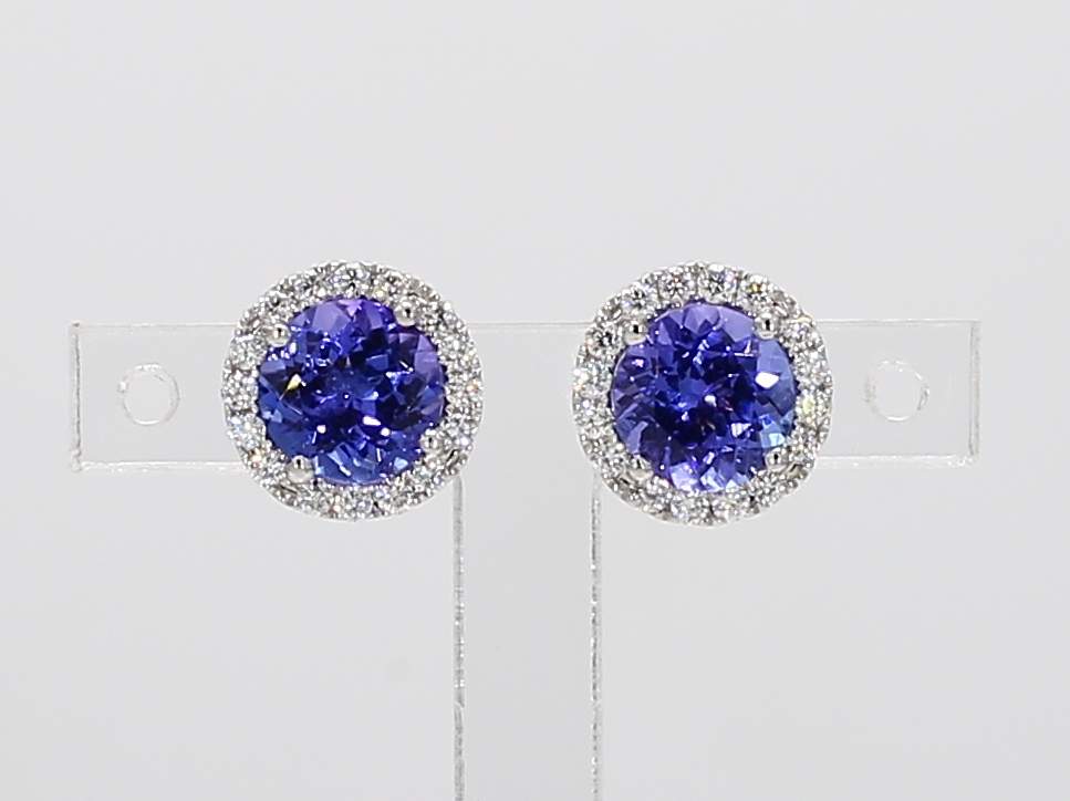 ROUND TANZANITE & ROUND DIAMOND 14KW EARRING
