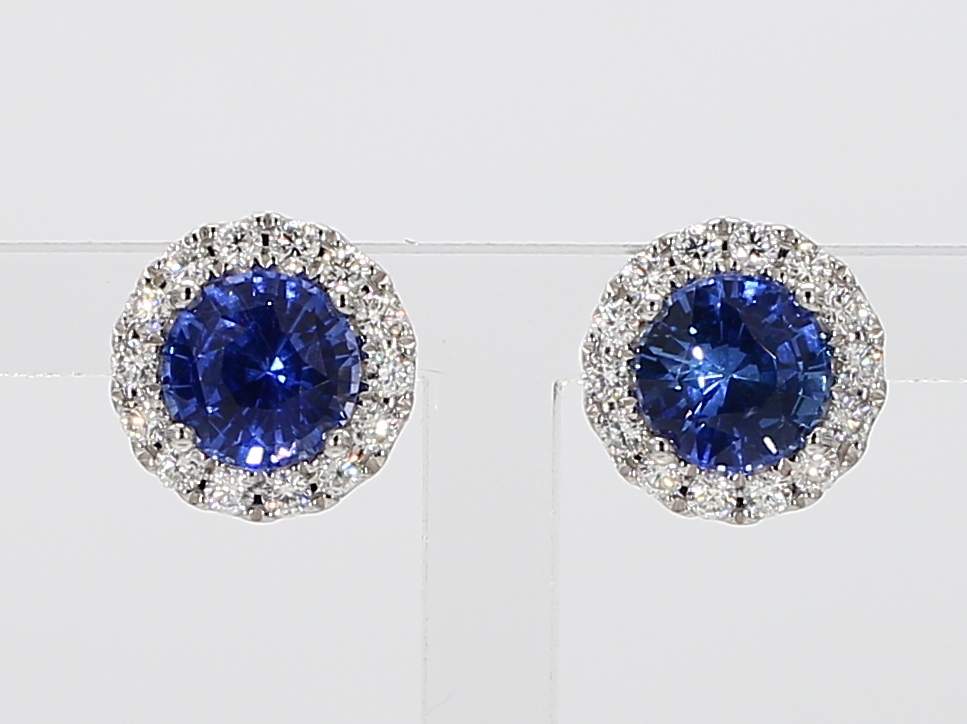 ROUND SAPPHIRE & ROUND DIAMOND 18KW EARRING