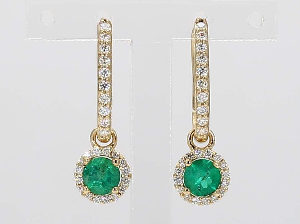 ROUND EMERALD & ROUND DIAMOND 14KY EARRING