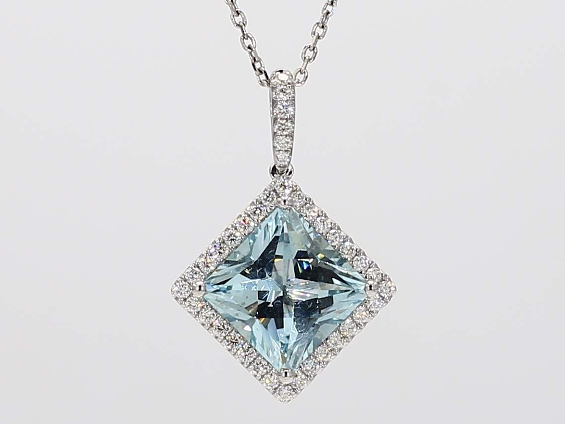 RADIANT AQUAMARINE & ROUND DIAMOND 14KW PENDANT