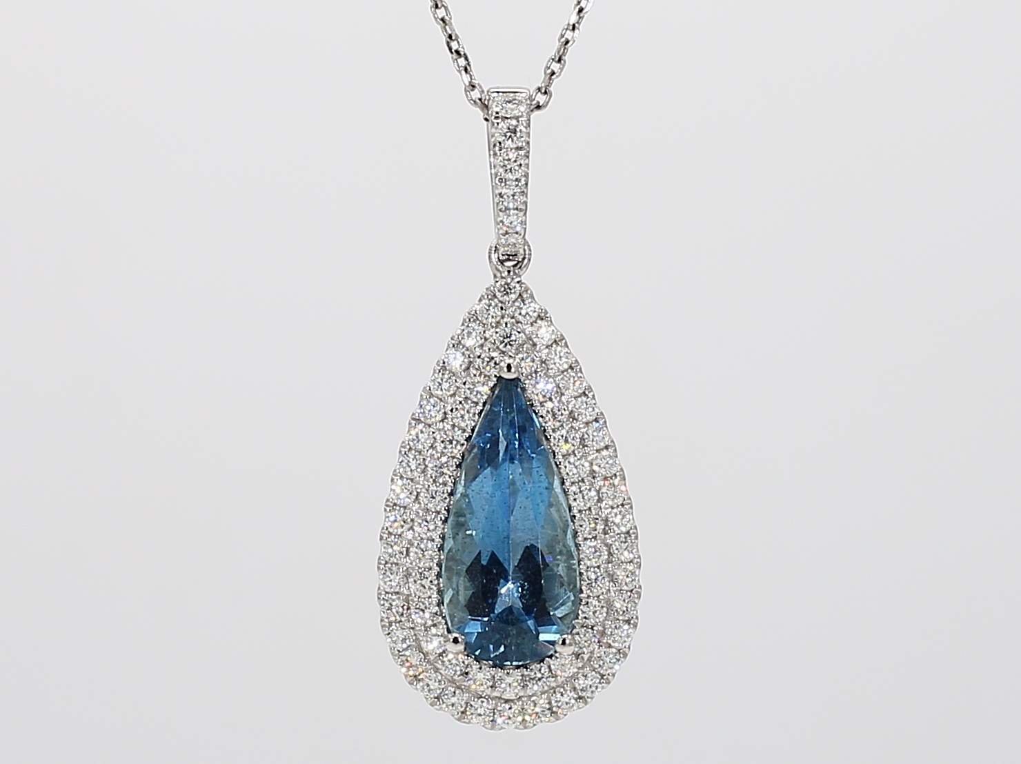 PEAR SHAPE AQUAMARINE & ROUND DIAMOND 14KW PENDANT