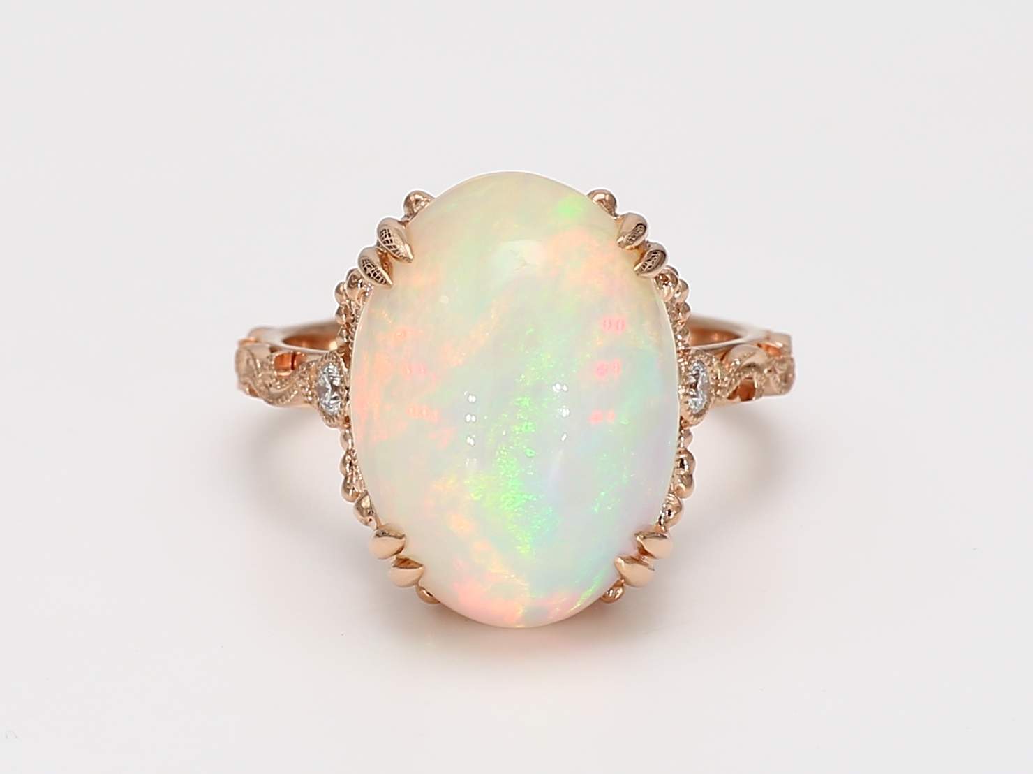 OVAL OPAL & ROUND DIAMOND 14KR RING