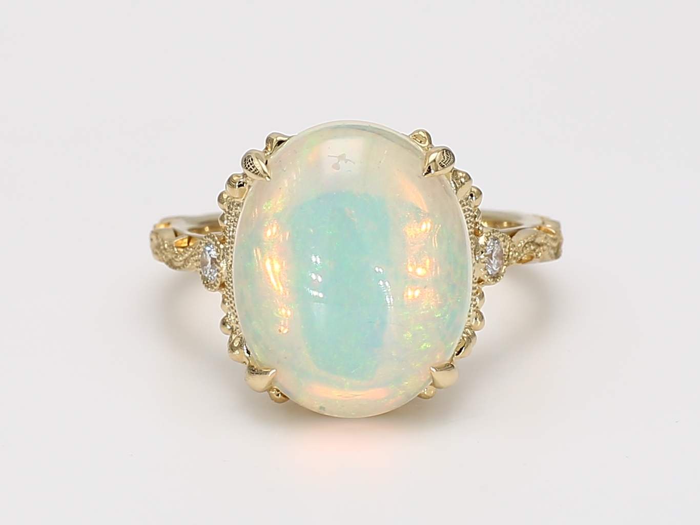 OVAL OPAL & ROUND DIAMOND 14KY RING
