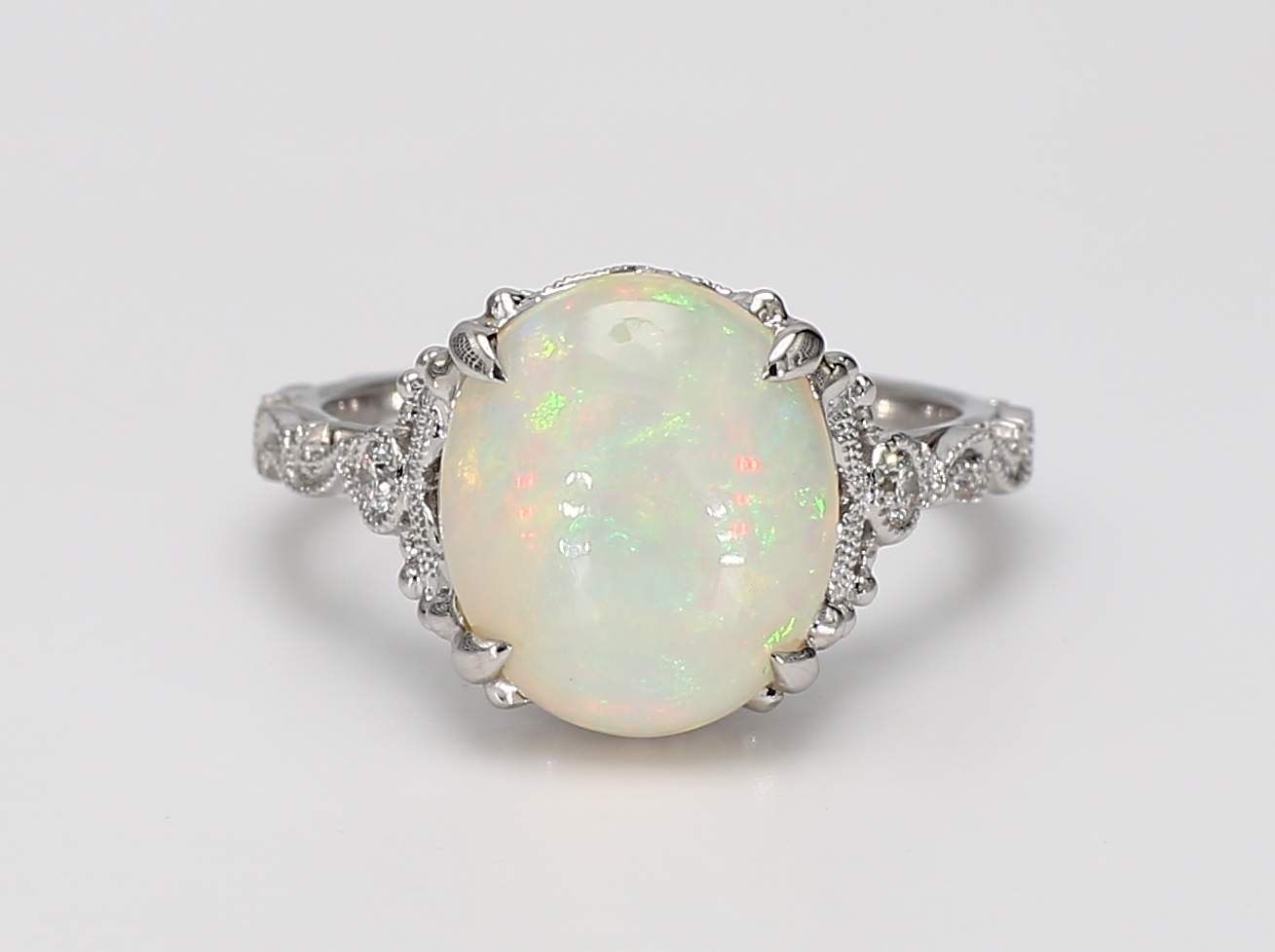 OVAL OPAL & ROUND DIAMOND 14KW RING