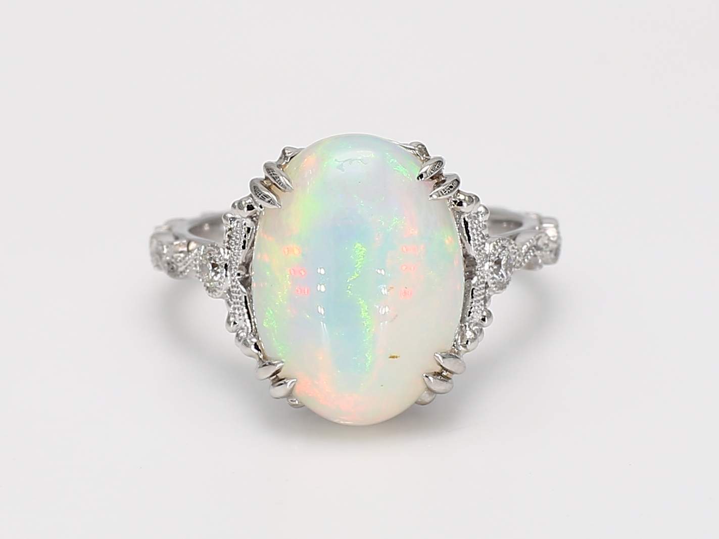 OVAL OPAL & ROUND DIAMOND 14KW RING