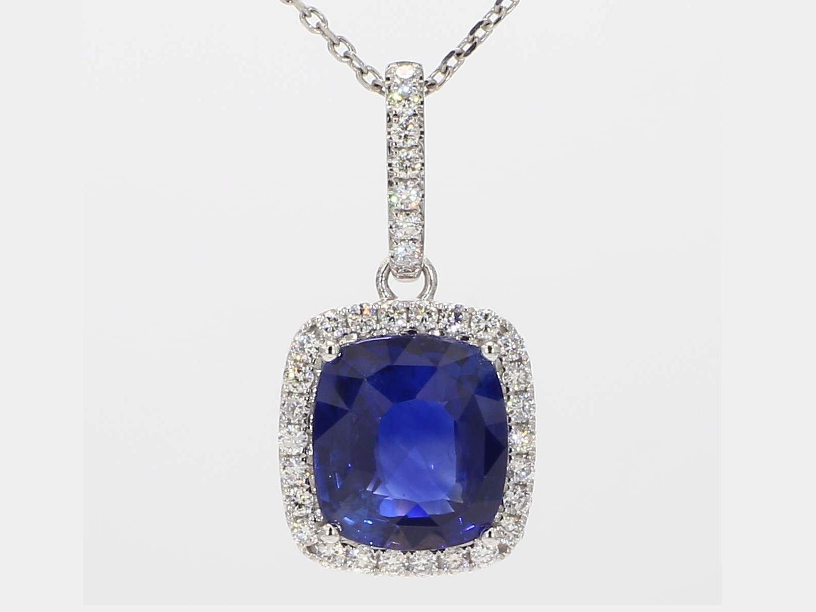 CUSHION SAPPHIRE GIA 2221008967 & ROUND DIAMOND 18KW PENDANT