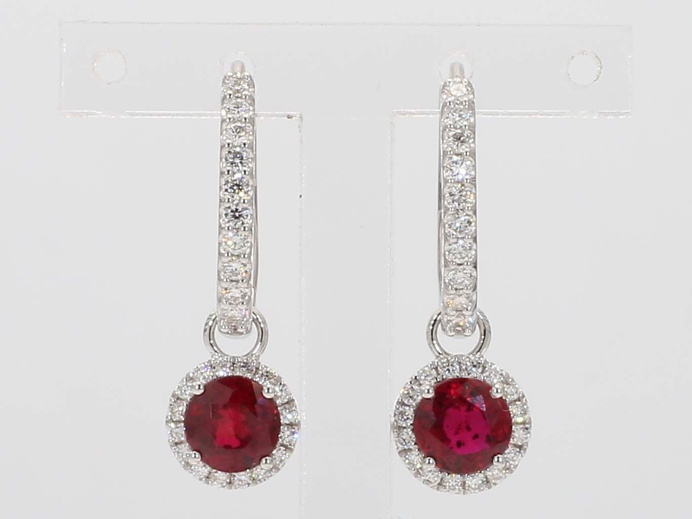 ROUND RUBY & ROUND DIAMOND 14KW EARRING