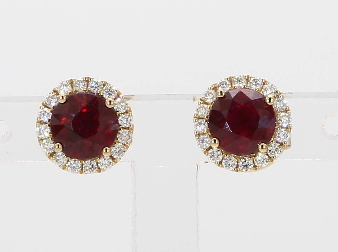 ROUND RUBY & ROUND DIAMOND 14KY EARRING