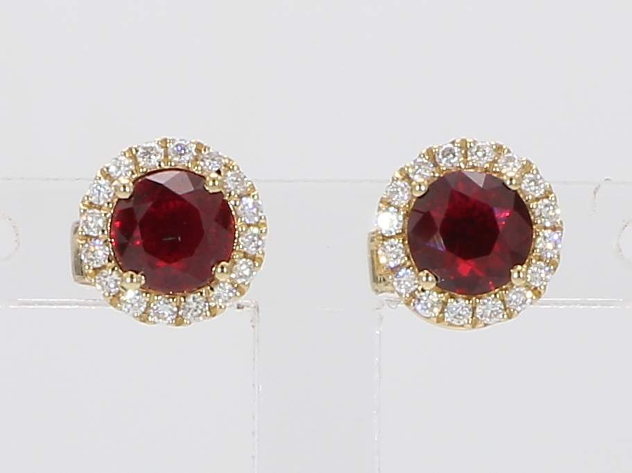 ROUND RUBY & ROUND DIAMOND 14KY EARRING