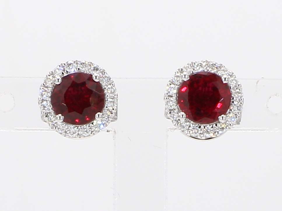ROUND RUBY & ROUND DIAMOND 14KW EARRING